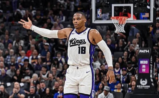 11月6日,国王主场121比116击败勇士,本场比赛,威斯布鲁克全场13投9中,其中三分球4投3中,贡献23分16篮板10助攻的数据。