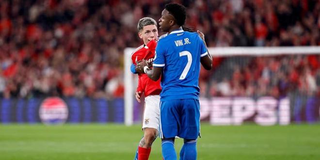 欧足联宣布对这名阿根廷球员实施临时禁赛,起因是他在欧冠首回合比赛中与维尼修斯发生冲突,且不排除进一步处罚的可能。本菲卡俱乐部表示将提出上诉。